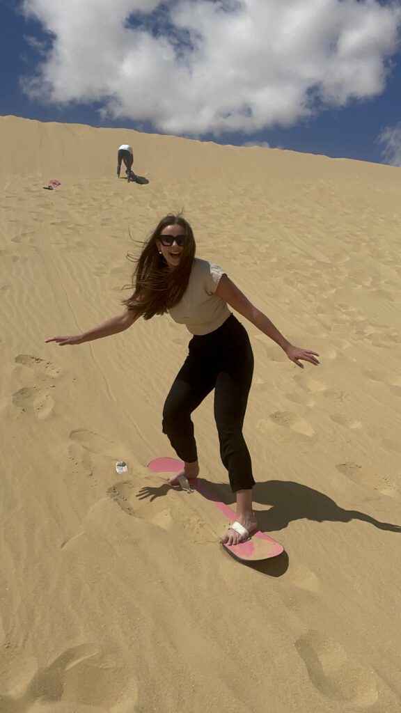 It was sandboarding in the desert.