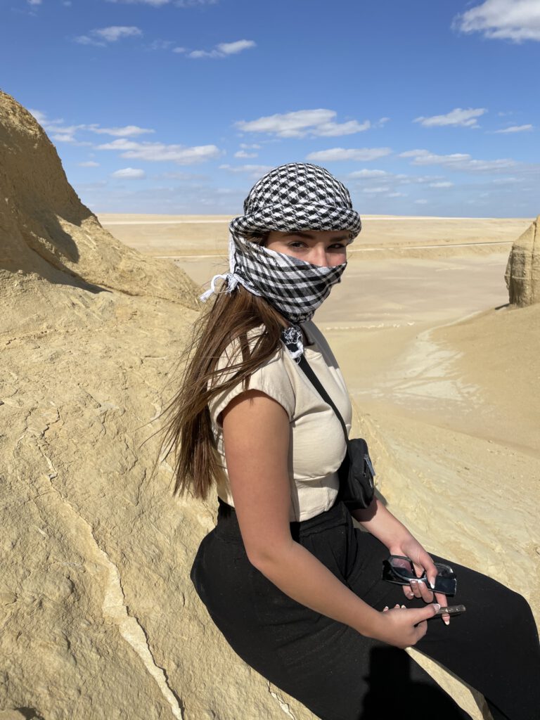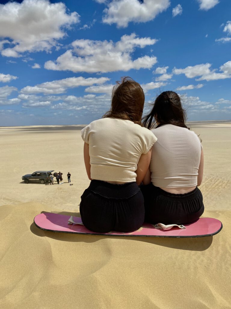 We had a day where we rode cars into the Fayoum desert. We sandboarded the dunes, climbed up them, and sat looking out. We danced barefoot in the desert with our tour guide. This is a moment I hope to remember for the rest of my life.