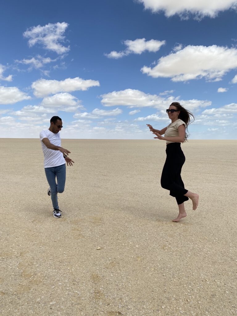 There was clapping, there was chanting—it was my friends, the tour guide, and the two drivers. The only life to be seen for miles. And I danced, battling with Falcon, our guide, while my friends cheered.