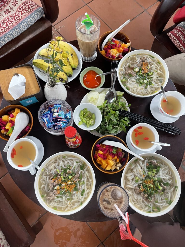 Steaming bowls of Pho, fresh fruit laid out perfectly, iced coffees sweating in the heat.